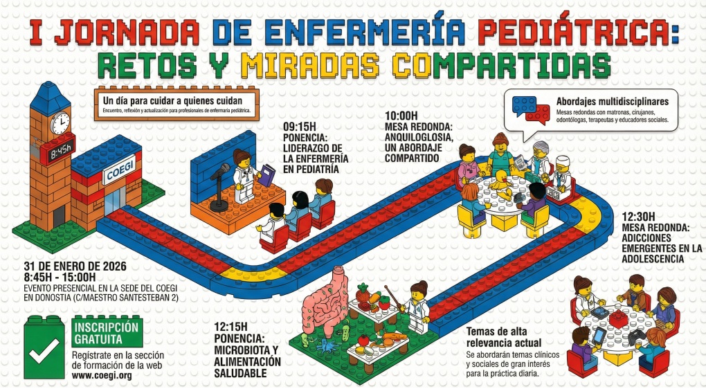 La jornada presencial se celebrará en la sede del COEGI el sábado 31 de enero, en horario de mañana, bajo el lema “Cuidar en Pediatría: miradas profesionales, retos compartidos”.