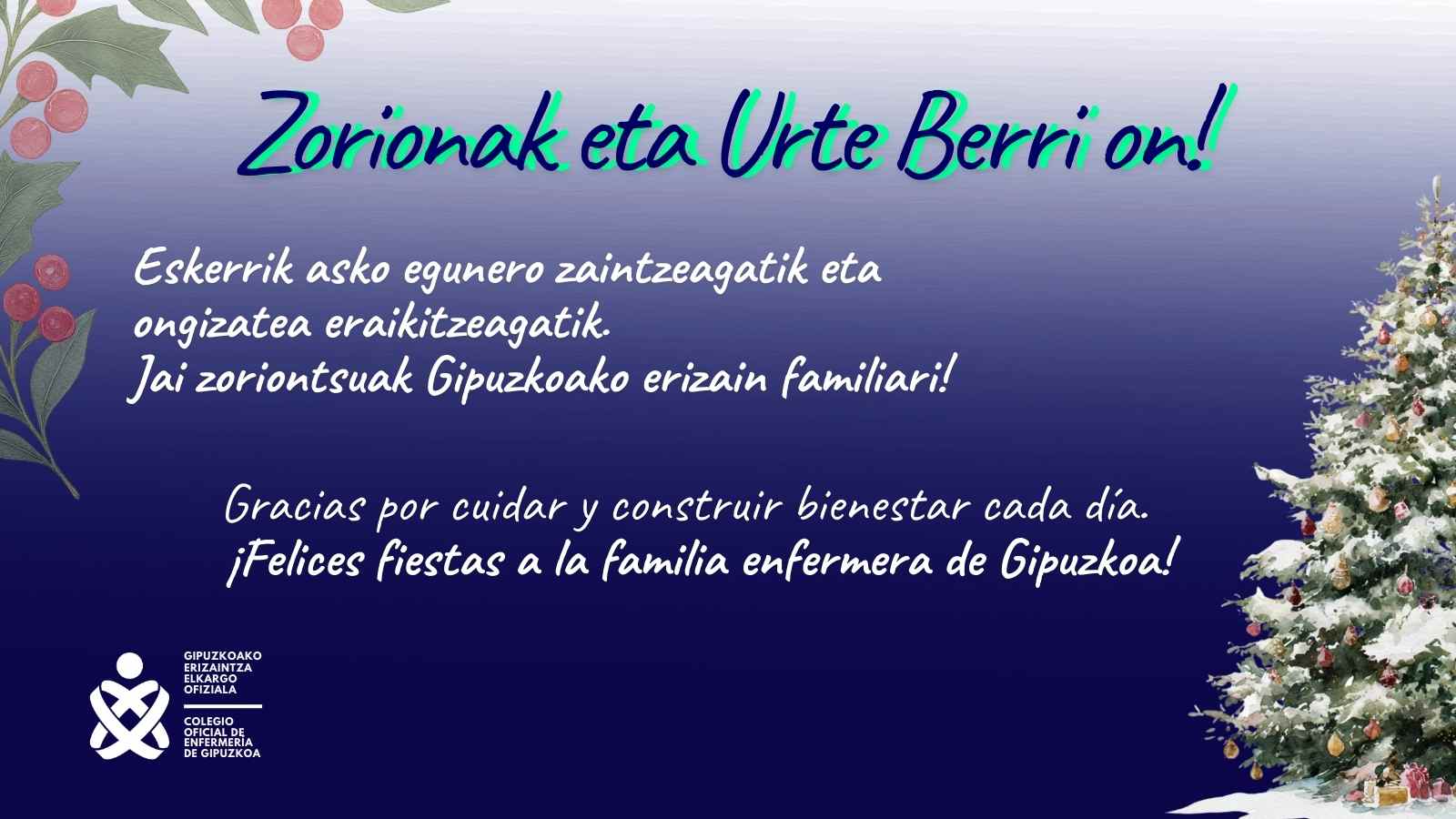Feliz Navidad a la gran familia enfermera de Gipuzkoa.