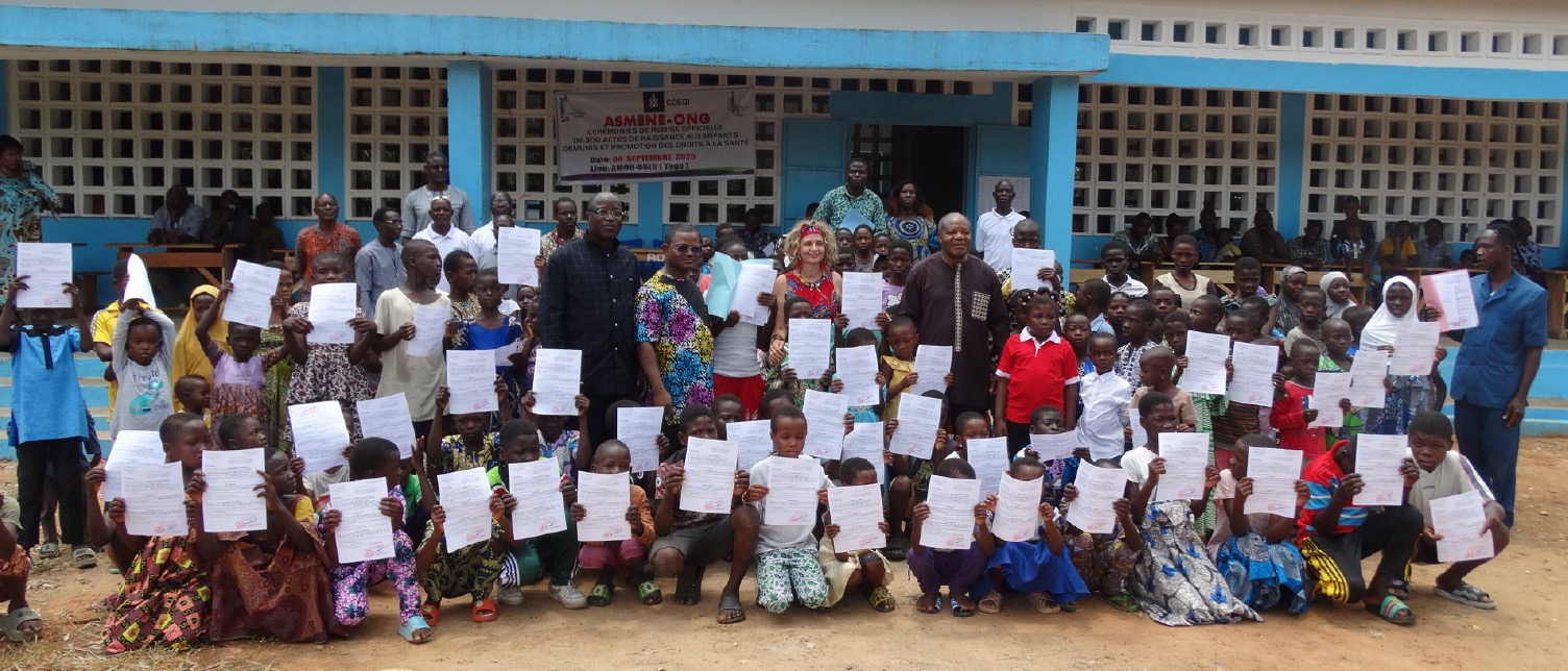 La ceremonia oficial de de las partidas de nacimiento se celebró en Amou-Oblo. Durante el acto, una niña habló en representación de sus compañeros/as expresando su agradecimiento al COEGI y a Sonrisas DELALÍ, así como a las personas e instituciones locales que han trabajado para estos menores dispongan de una identidad jurídica. Durante su intervención subrayó que harán buen uso de los certificados de nacimiento y se esforzarán en la escuela para tener éxito.